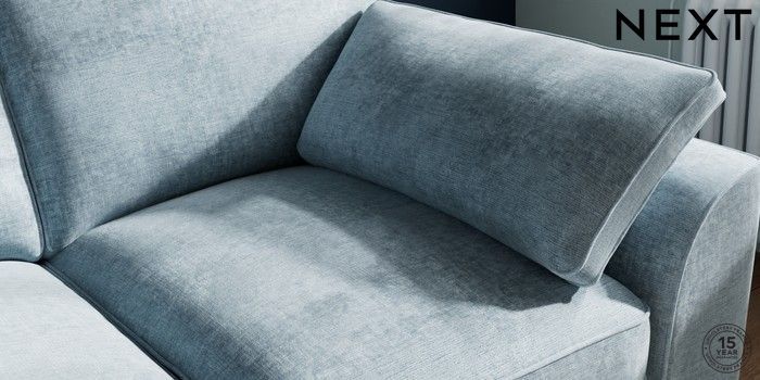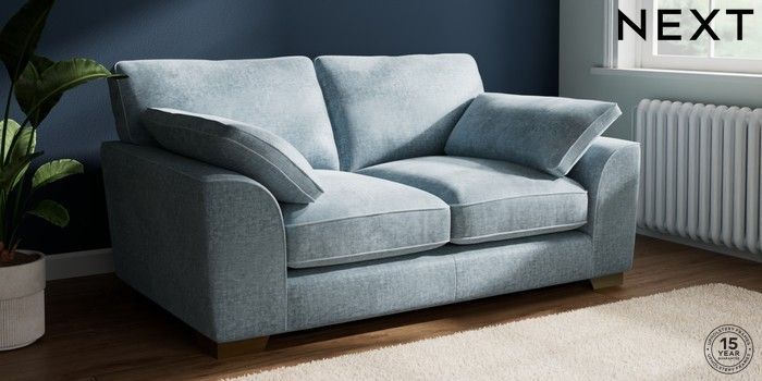7.3.1 Buy Stamford Grand Relaxed Sit 2 Seater Sofa Plush Chenille Light Blue Large Square Angle - Brushed Brass from the Next UK online shop