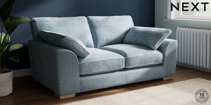 7.3.1 Buy Stamford Grand Relaxed Sit 2 Seater Sofa Plush Chenille Light Blue Large Square Angle - Light from the Next UK online shop