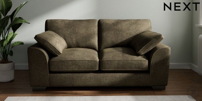 7.3.1 Buy Stamford Grand Relaxed Sit 2 Seater Sofa Plush Chenille Moss Green Large Square Angle - Gunmetal from the Next UK online shop Click here to use our accessible website
