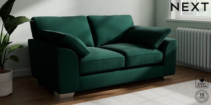 7.3.1 Buy Stamford Grand Relaxed Sit 2 Seater Sofa Plush Velvet Easy Clean Bottle Green Large Square Angle - Chrome Metal from the Next UK online shop Click here to use our accessible website