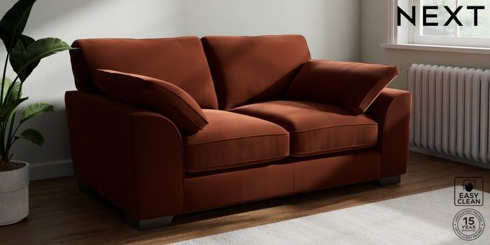7.3.1 Buy Stamford Grand Relaxed Sit 2 Seater Sofa Plush Velvet Easy Clean Ginger Orange Large Square Angle - Gunmetal from the Next UK online shop Click here to use our accessible website