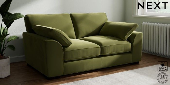7.3.1 Buy Stamford Grand Relaxed Sit 2 Seater Sofa Plush Velvet Easy Clean Mid Olive Green Large Square Angle - Dark from the Next UK online shop Click here to use our accessible website