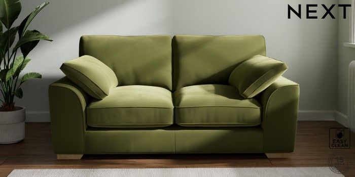 7.3.1 Buy Stamford Grand Relaxed Sit 2 Seater Sofa Plush Velvet Easy Clean Mid Olive Green Large Square Angle - Light from the Next UK online shop Click here to use our accessible website