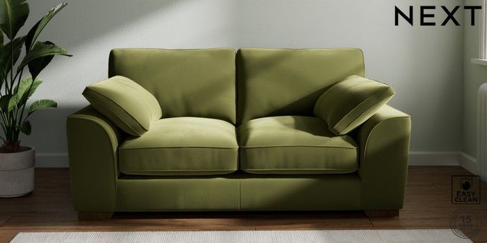 7.3.1 Buy Stamford Grand Relaxed Sit 2 Seater Sofa Plush Velvet Easy Clean Mid Olive Green Large Square Angle - Mid from the Next UK online shop Click here to use our accessible website
