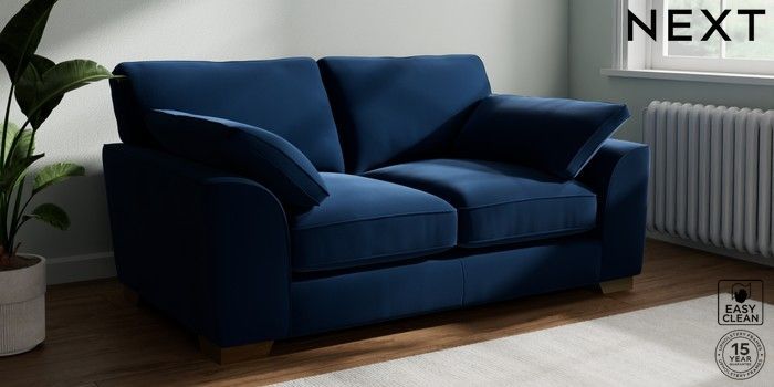 7.3.1 Buy Stamford Grand Relaxed Sit 2 Seater Sofa Plush Velvet Easy Clean Navy Blue Large Square Angle - Brushed Brass from the Next UK online shop Click here to use our accessible website
