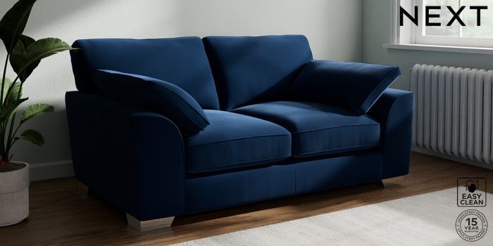 7.3.1 Buy Stamford Grand Relaxed Sit 2 Seater Sofa Plush Velvet Easy Clean Navy Blue Large Square Angle - Chrome Metal from the Next UK online shop Click here to use our accessible website
