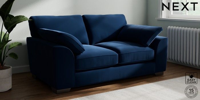 7.3.1 Buy Stamford Grand Relaxed Sit 2 Seater Sofa Plush Velvet Easy Clean Navy Blue Large Square Angle - Gunmetal from the Next UK online shop Click here to use our accessible website
