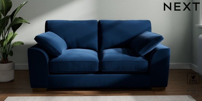 7.3.1 Buy Stamford Grand Relaxed Sit 2 Seater Sofa Plush Velvet Easy Clean Navy Blue Large Square Angle - Mid from the Next UK online shop Click here to use our accessible website