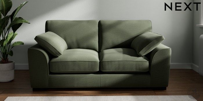 7.3.1 Buy Stamford Grand Relaxed Sit 2 Seater Sofa Relaxed Linen Look Dark Green Large Square Angle - Dark from the Next UK online shop Click here to use our accessible website