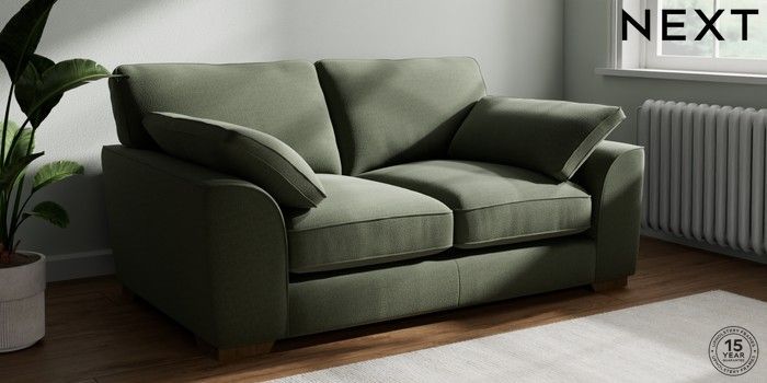 7.3.1 Buy Stamford Grand Relaxed Sit 2 Seater Sofa Relaxed Linen Look Dark Green Large Square Angle - Mid from the Next UK online shop Click here to use our accessible website