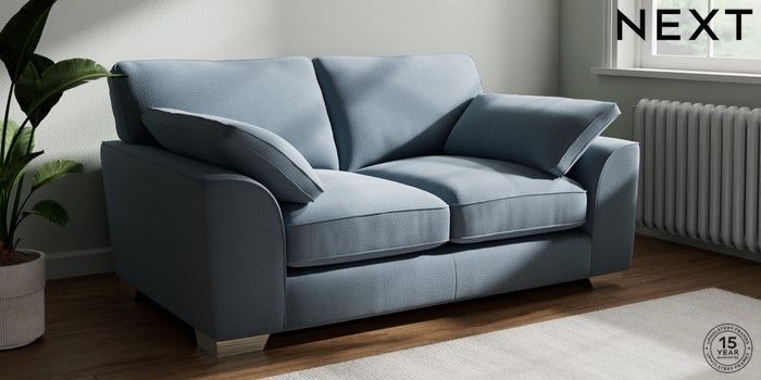 7.3.1 Buy Stamford Grand Relaxed Sit 2 Seater Sofa Relaxed Linen Look Mid Blue Large Square Angle - Chrome Metal from the Next UK online shop Click here to use our accessible website