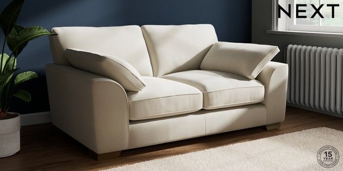 7.3.1 Buy Stamford Grand Relaxed Sit 2 Seater Sofa Relaxed Linen Look Oyster Large Square Angle - Brushed Brass from the Next UK online shop Click here to use our accessible website