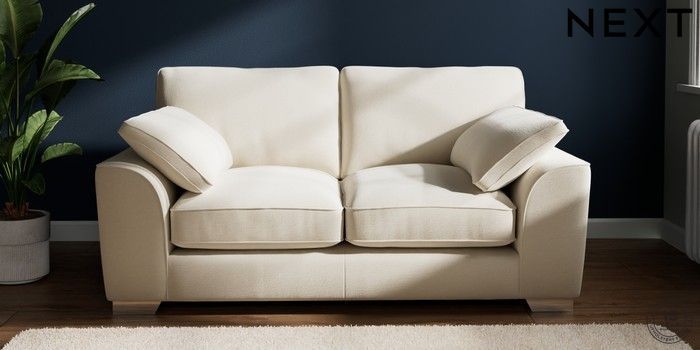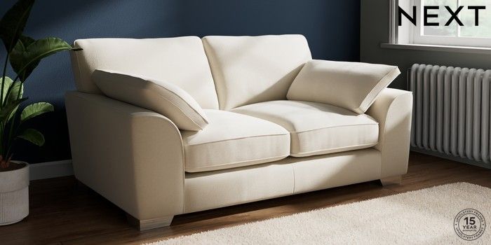 7.3.1 Buy Stamford Grand Relaxed Sit 2 Seater Sofa Ripple Chenille Oyster Large Square Angle - Chrome Metal from the Next UK online shop Click here to use our accessible website
