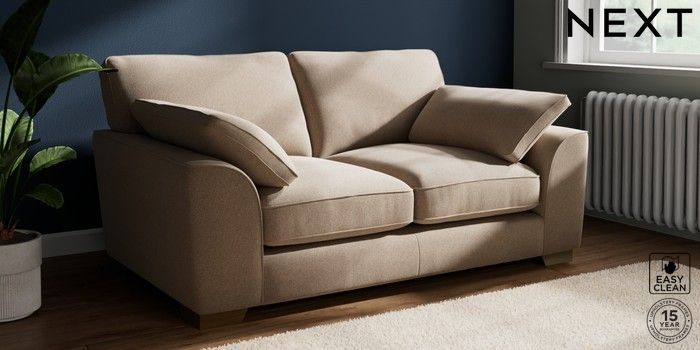 7.3.1 Buy Stamford Grand Relaxed Sit 2 Seater Sofa Tweedy Blend Easy Clean Light Dove Natural Large Square Angle - Brushed Brass from the Next UK online shop Click here to use our accessible website
