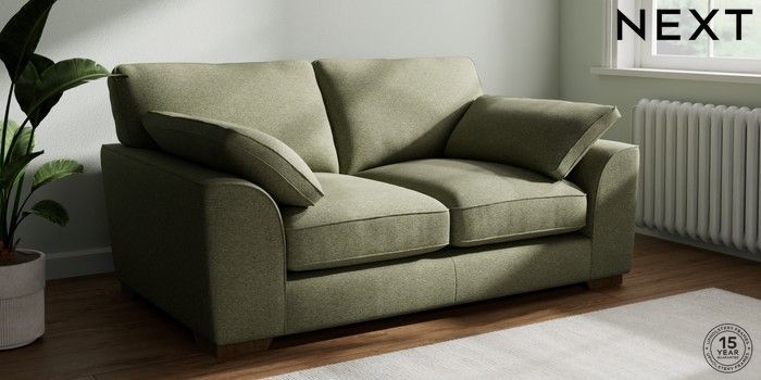 7.3.1 Buy Stamford Grand Relaxed Sit 2 Seater Sofa Tweedy Chenille Mid Moss Green Large Square Angle - Mid from the Next UK online shop Click here to use our accessible website