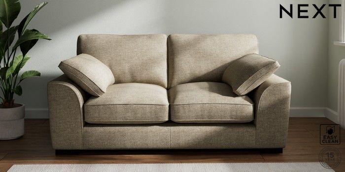 7.3.1 Buy Stamford Grand Relaxed Sit 2 Seater Sofa Woven Chenille Easy Clean Mid Natural Large Square Angle - Dark from the Next UK online shop Click here to use our accessible website