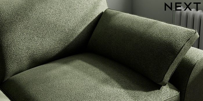 7.3.1 Buy Stamford Grand Relaxed Sit 3 Seater Sofa Boucle Chenille Dark Moss Green Large Square Angle - Brushed Brass from the Next UK online shop Click here to use our accessible website