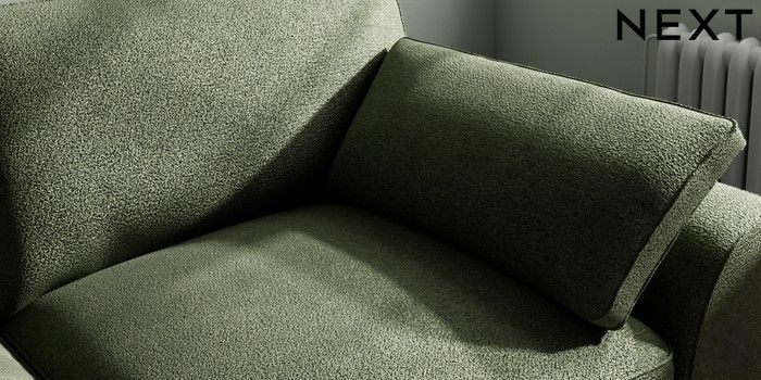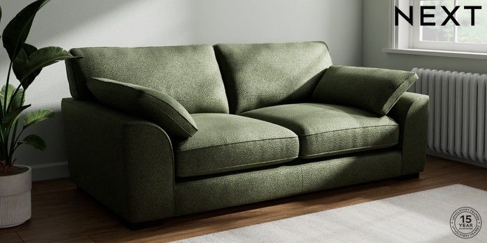 7.3.1 Buy Stamford Grand Relaxed Sit 3 Seater Sofa Boucle Chenille Dark Moss Green Large Square Angle - Dark from the Next UK online shop Click here to use our accessible website