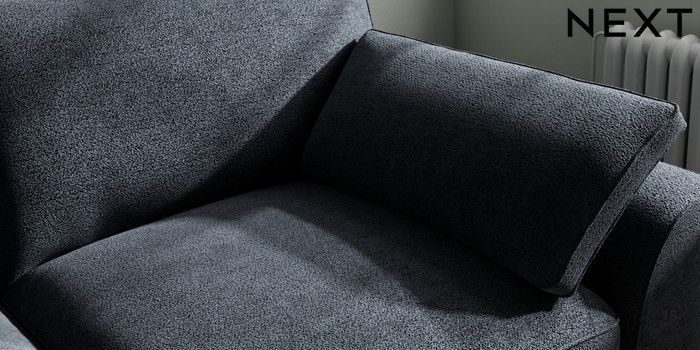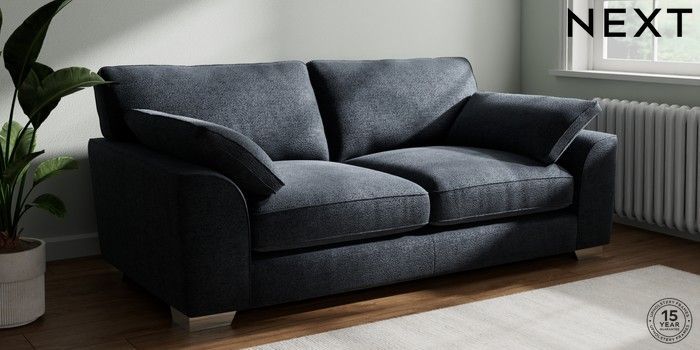 7.3.1 Buy Stamford Grand Relaxed Sit 3 Seater Sofa Boucle Chenille Dark Slate Blue Large Square Angle - Chrome Metal from the Next UK online shop Click here to use our accessible website