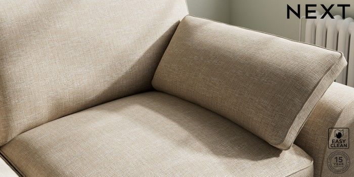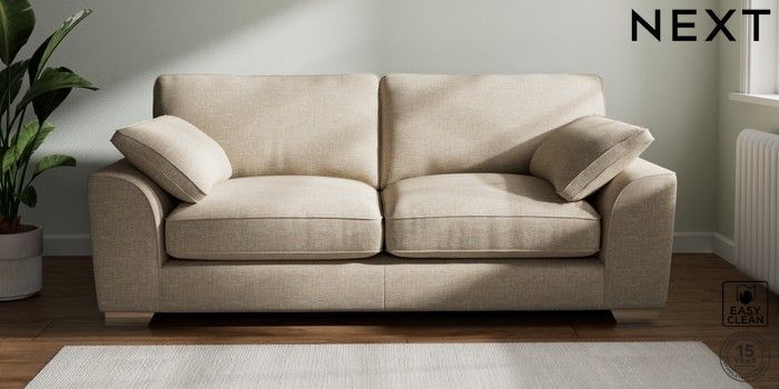 7.3.1 Buy Stamford Grand Relaxed Sit 3 Seater Sofa Boucle Weave Easy Clean Dark Natural Large Square Angle - Chrome Metal from the Next UK online shop