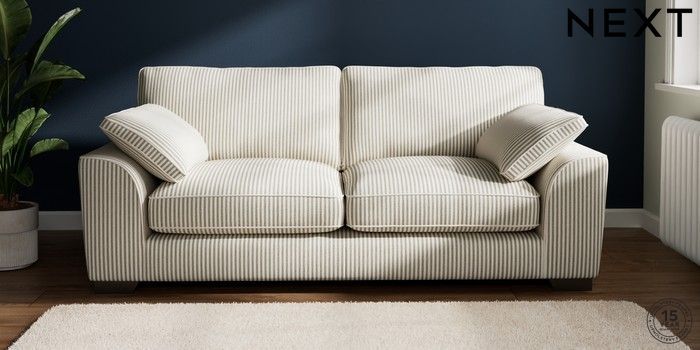 7.2.10 Buy Stamford Grand Relaxed Sit 3 Seater Sofa Chenille Stripe Moss Green Large Square Angle - Gunmetal from the Next UK online shop Click here to use our accessible website