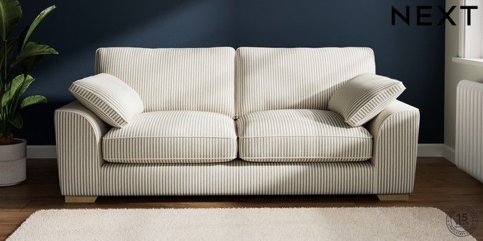 7.2.10 Buy Stamford Grand Relaxed Sit 3 Seater Sofa Chenille Stripe Moss Green Large Square Angle - Light from the Next UK online shop Click here to use our accessible website
