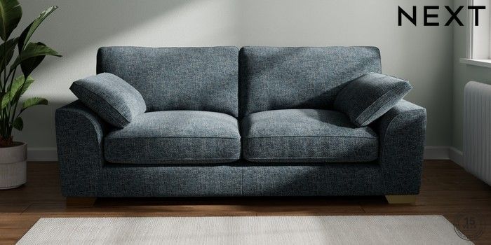 7.3.1 Buy Stamford Grand Relaxed Sit 3 Seater Sofa Chunky Chenille Dark Navy Blue Large Square Angle - Brushed Brass from the Next UK online shop Click here to use our accessible website