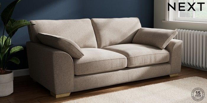 7.3.1 Buy Stamford Grand Relaxed Sit 3 Seater Sofa Chunky Chenille Light Dove Large Square Angle - Light from the Next UK online shop