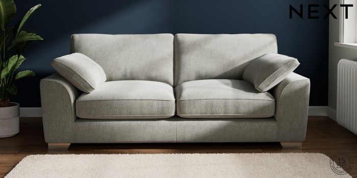 7.2.10 Buy Stamford Grand Relaxed Sit 3 Seater Sofa Chunky Chenille Light Grey Large Square Angle - Chrome Metal from the Next UK online shop Click here to use our accessible website