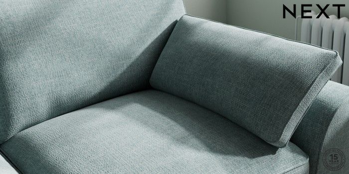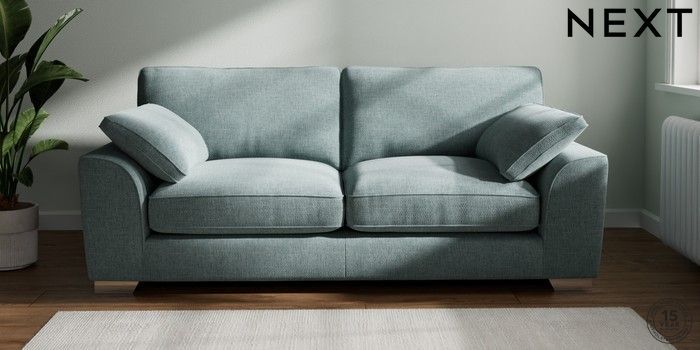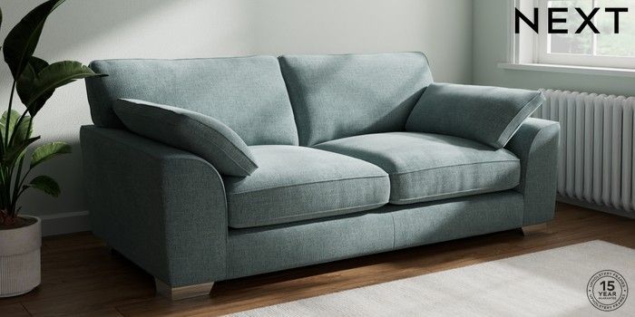 7.3.1 Buy Stamford Grand Relaxed Sit 3 Seater Sofa Chunky Chenille Light Teal Green Large Square Angle - Chrome Metal from the Next UK online shop Click here to use our accessible website