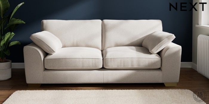 7.3.1 Buy Stamford Grand Relaxed Sit 3 Seater Sofa Chunky Chenille Oyster Large Square Angle - Brushed Brass from the Next UK online shop Click here to use our accessible website