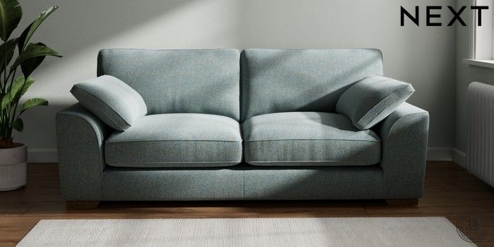 7.2.10 Buy Stamford Grand Relaxed Sit 3 Seater Sofa Chunky Marl Mid Blue Large Square Angle - Mid from the Next UK online shop Click here to use our accessible website