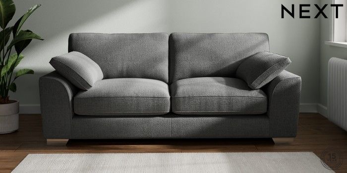 7.3.1 Buy Stamford Grand Relaxed Sit 3 Seater Sofa Chunky Texture Dark Grey Large Square Angle - Chrome Metal from the Next UK online shop Click here to use our accessible website
