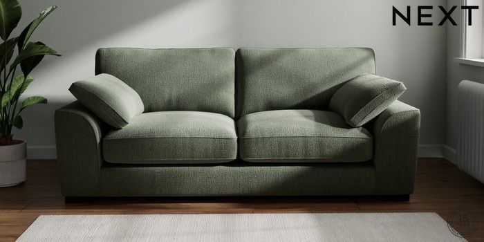 7.2.10 Buy Stamford Grand Relaxed Sit 3 Seater Sofa Chunky Texture Mid Forest Green Large Square Angle - Dark from the Next UK online shop Click here to use our accessible website