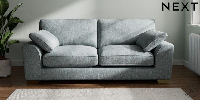 7.3.1 Buy Stamford Grand Relaxed Sit 3 Seater Sofa Chunky Weave Mid Blue Large Square Angle - Brushed Brass from the Next UK online shop Click here to use our accessible website