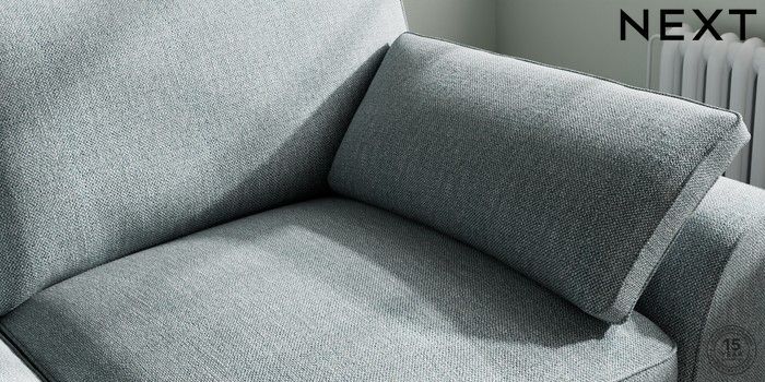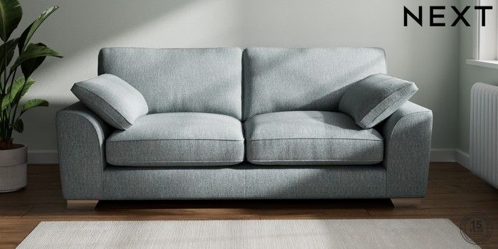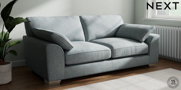 7.3.1 Buy Stamford Grand Relaxed Sit 3 Seater Sofa Chunky Weave Mid Blue Large Square Angle - Chrome Metal from the Next UK online shop Click here to use our accessible website