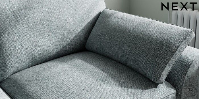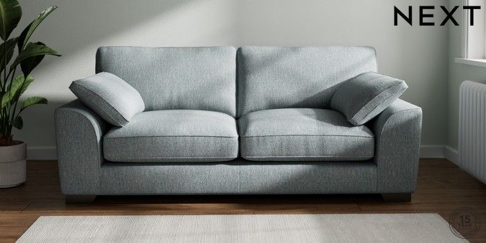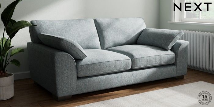 7.3.1 Buy Stamford Grand Relaxed Sit 3 Seater Sofa Chunky Weave Mid Blue Large Square Angle - Gunmetal from the Next UK online shop Click here to use our accessible website