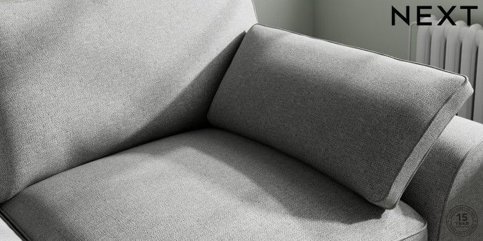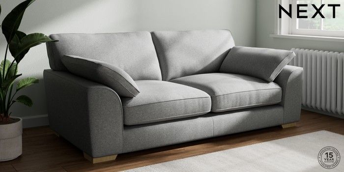 7.3.1 Buy Stamford Grand Relaxed Sit 3 Seater Sofa Chunky Weave Mid Grey Large Square Angle - Light from the Next UK online shop