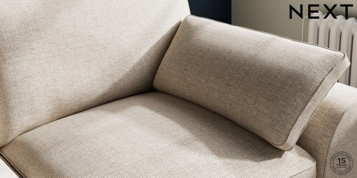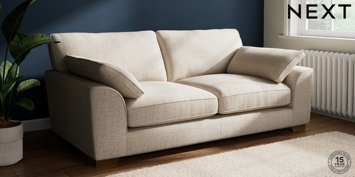 7.3.1 Buy Stamford Grand Relaxed Sit 3 Seater Sofa Chunky Weave Mid Natural Large Square Angle - Brushed Brass from the Next UK online shop Click here to use our accessible website