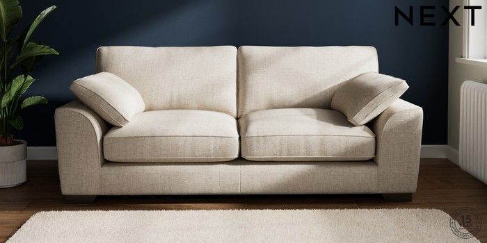 7.3.1 Buy Stamford Grand Relaxed Sit 3 Seater Sofa Chunky Weave Mid Natural Large Square Angle - Gunmetal from the Next UK online shop Click here to use our accessible website