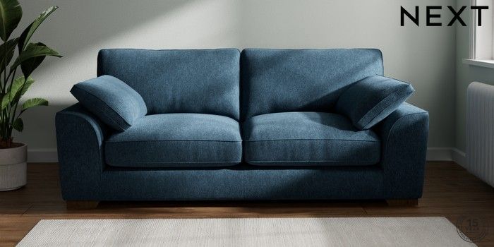 7.2.10 Buy Stamford Grand Relaxed Sit 3 Seater Sofa Cotswold Chenille Dark Blue Large Square Angle - Mid from the Next UK online shop Click here to use our accessible website