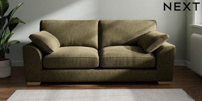7.2.10 Buy Stamford Grand Relaxed Sit 3 Seater Sofa Cotswold Chenille Dark Green Large Square Angle - Light from the Next UK online shop Click here to use our accessible website