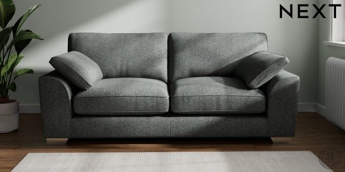 7.3.1 Buy Stamford Grand Relaxed Sit 3 Seater Sofa Cotswold Chenille Dark Grey Large Square Angle - Chrome Metal from the Next UK online shop Click here to use our accessible website