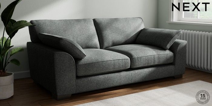 7.3.1 Buy Stamford Grand Relaxed Sit 3 Seater Sofa Cotswold Chenille Dark Grey Large Square Angle - Gunmetal from the Next UK online shop Click here to use our accessible website