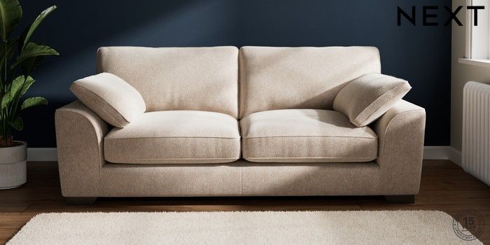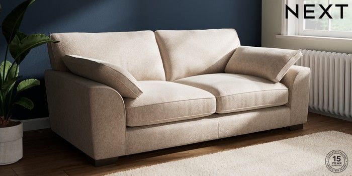 7.3.1 Buy Stamford Grand Relaxed Sit 3 Seater Sofa Cotswold Chenille Light Natural Large Square Angle - Gunmetal from the Next UK online shop Click here to use our accessible website