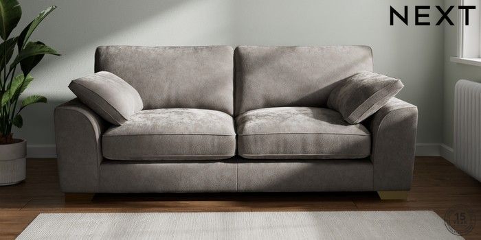 7.3.1 Buy Stamford Grand Relaxed Sit 3 Seater Sofa Distressed Velour French Grey Large Square Angle - Brushed Brass from the Next UK online shop Click here to use our accessible website