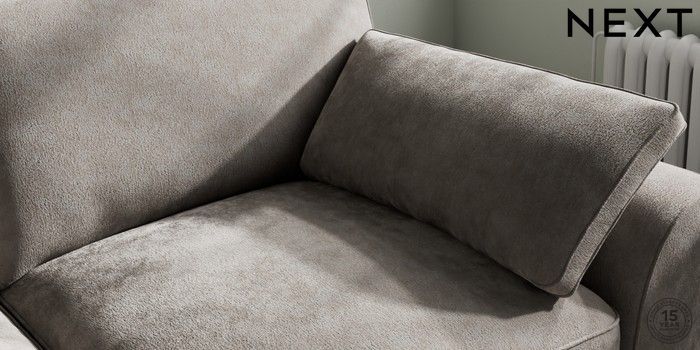 7.3.1 Buy Stamford Grand Relaxed Sit 3 Seater Sofa Distressed Velour French Grey Large Square Angle - Chrome Metal from the Next UK online shop Click here to use our accessible website