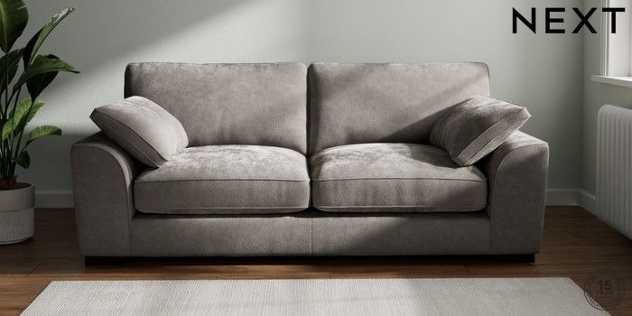 7.3.1 Buy Stamford Grand Relaxed Sit 3 Seater Sofa Distressed Velour French Grey Large Square Angle - Dark from the Next UK online shop Click here to use our accessible website