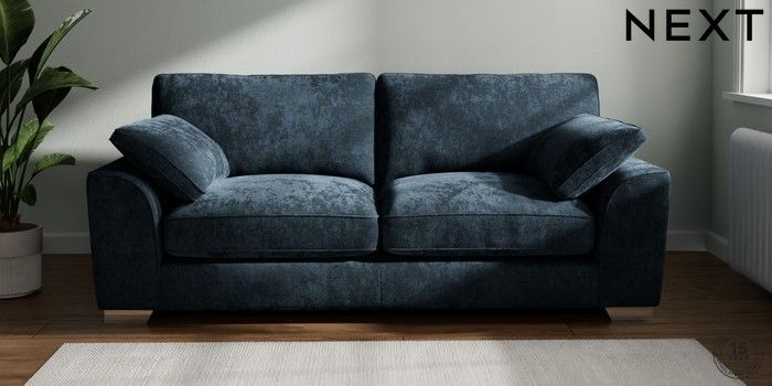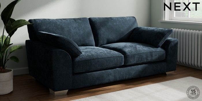 7.3.1 Buy Stamford Grand Relaxed Sit 3 Seater Sofa Distressed Velour Midnight Blue Large Square Angle - Chrome Metal from the Next UK online shop Click here to use our accessible website
