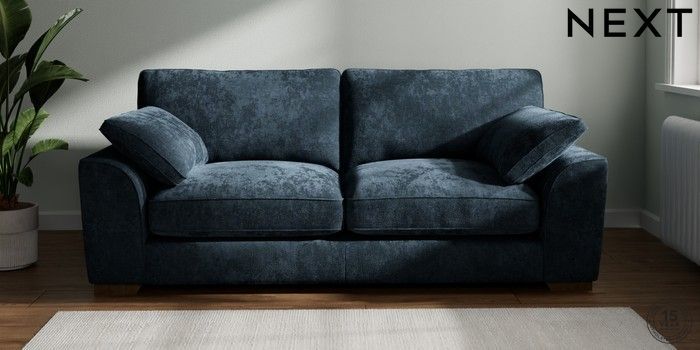 7.2.10 Buy Stamford Grand Relaxed Sit 3 Seater Sofa Distressed Velour Midnight Blue Large Square Angle - Mid from the Next UK online shop Click here to use our accessible website